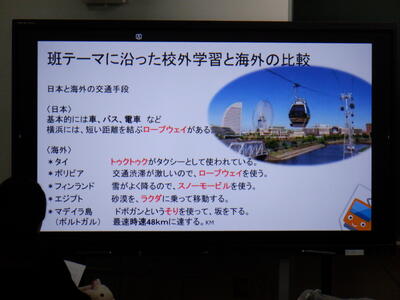 11月22日に実施した横浜での校外学習について各班でスライドにまとめ、発表会を行いました。